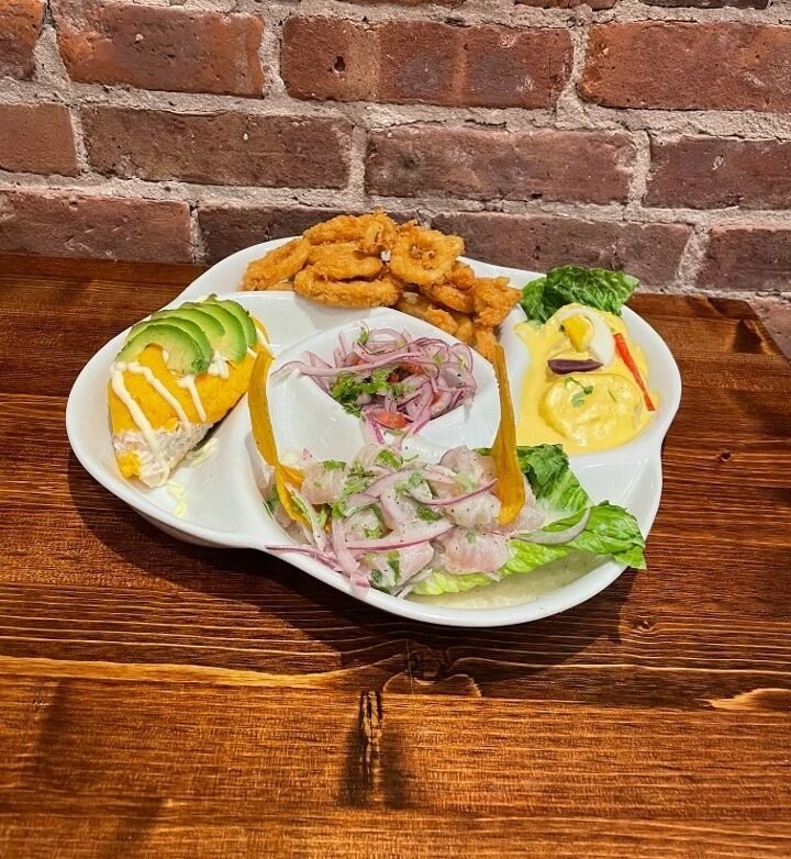 CEVICHE CLASICO, CEVICHE MIXTO, CAUSA DE POLLO, CAUSA DE ATUN, PAPA A LA HUACAINA, CALAMARES FRITOS, JALEA ARROZ CON MARISCOS, ARROZ CHAUFA DE MARISCOS.